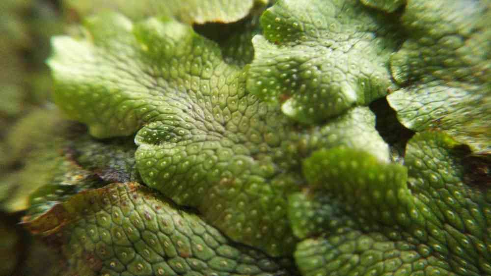 ゼニゴケの仲間。蛇のウロコのように見える。