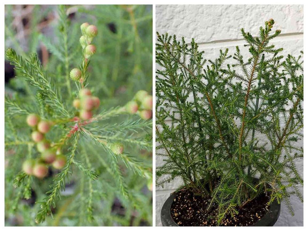 バーゼリア・ピッコロの全体の姿です。南アフリカ原産(オーストラリア原産も)の植物あるあるで、過湿に弱いくせに水切れにもとても弱いそうなので、底面給水の鉢に植えてみました。一見、針葉樹のはっぱみたいですが、触るとやわらかくて全然チクチクせず、ふんわりした感触です。日当たりが好きで、-3度まで耐えるそうですが、霜には弱いようですので、日中は外でお日様に当て、夜間は室内に入れることにしています。丸い蕾が出てきてとても楽しみです。実がなるといいなあ。。。成ったらPhoto上げますね♪