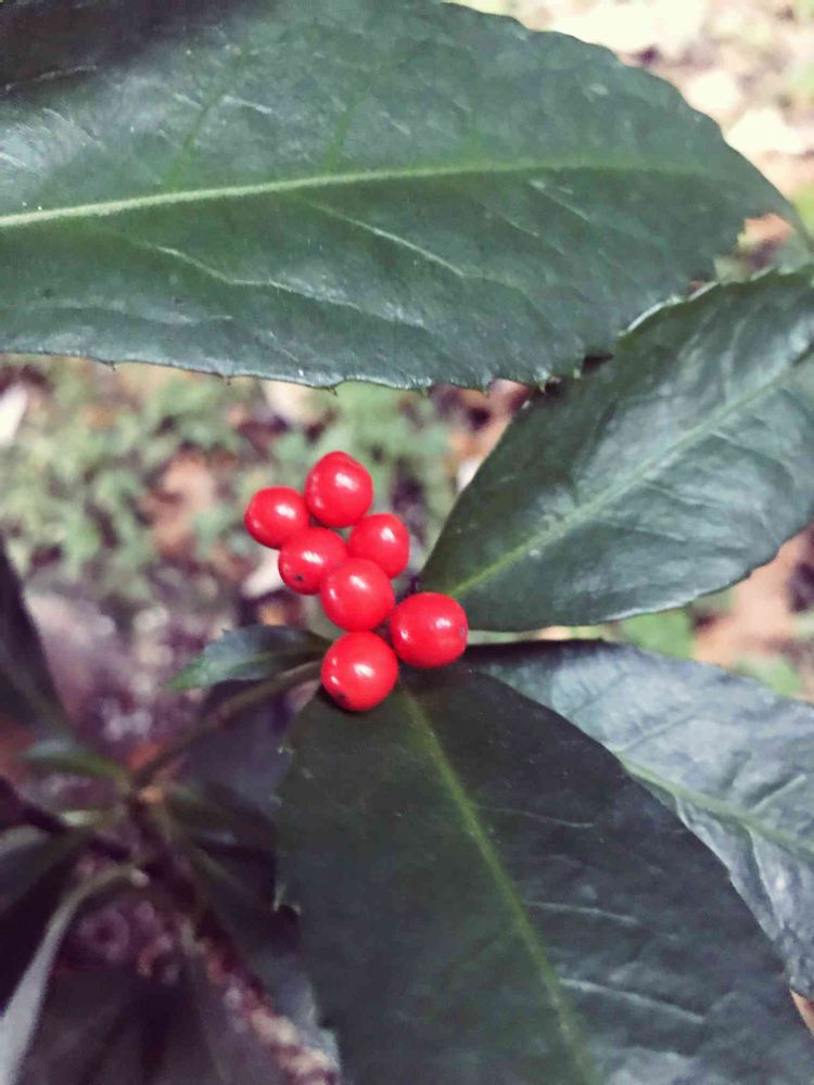 まだ、実は、付いてないけど、黄色の実の千両も、生えてきています😊🌱