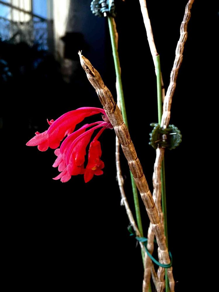 花付きはあまり良くはなく、古い方のバルブに思い出したようにポツンと咲くものの花期は物凄く長い。ということ。