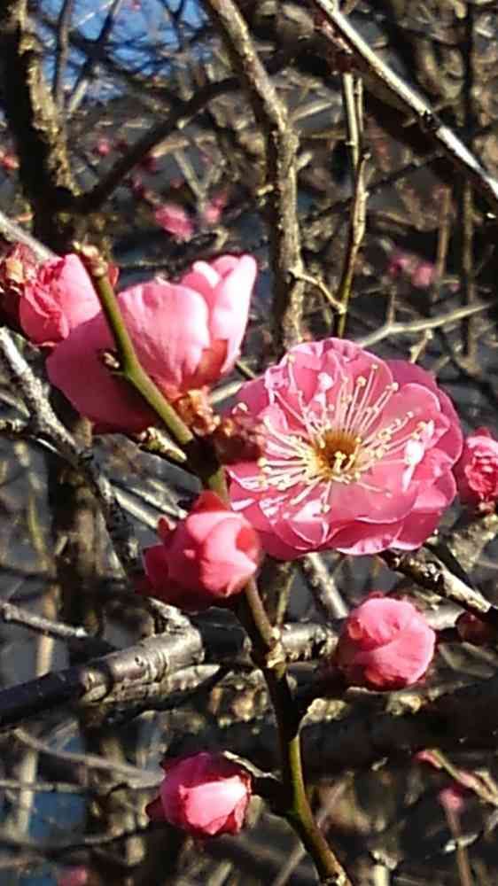 ご近所で毎年早咲きナンバーワンの紅梅です。
