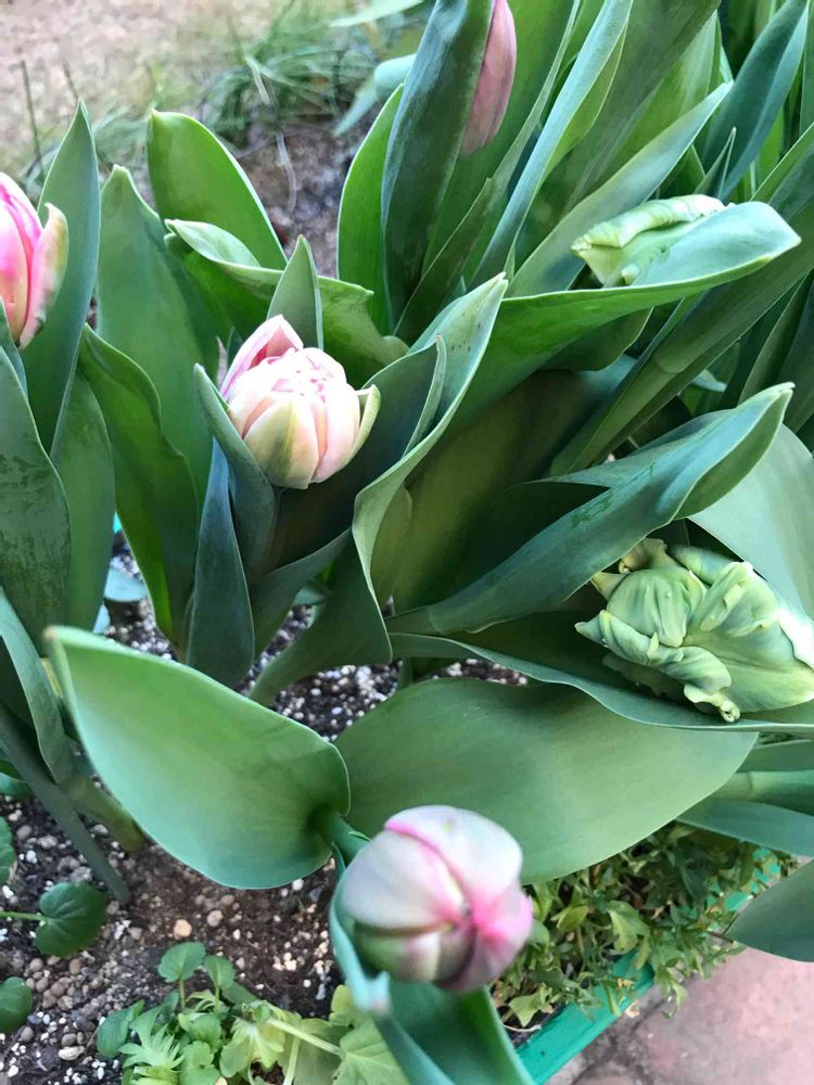 昨年の春に咲いたチューリップの球根を、9月から冷蔵庫で保管して、春と勘違いさせて咲かせるので種類は普通の子です😁