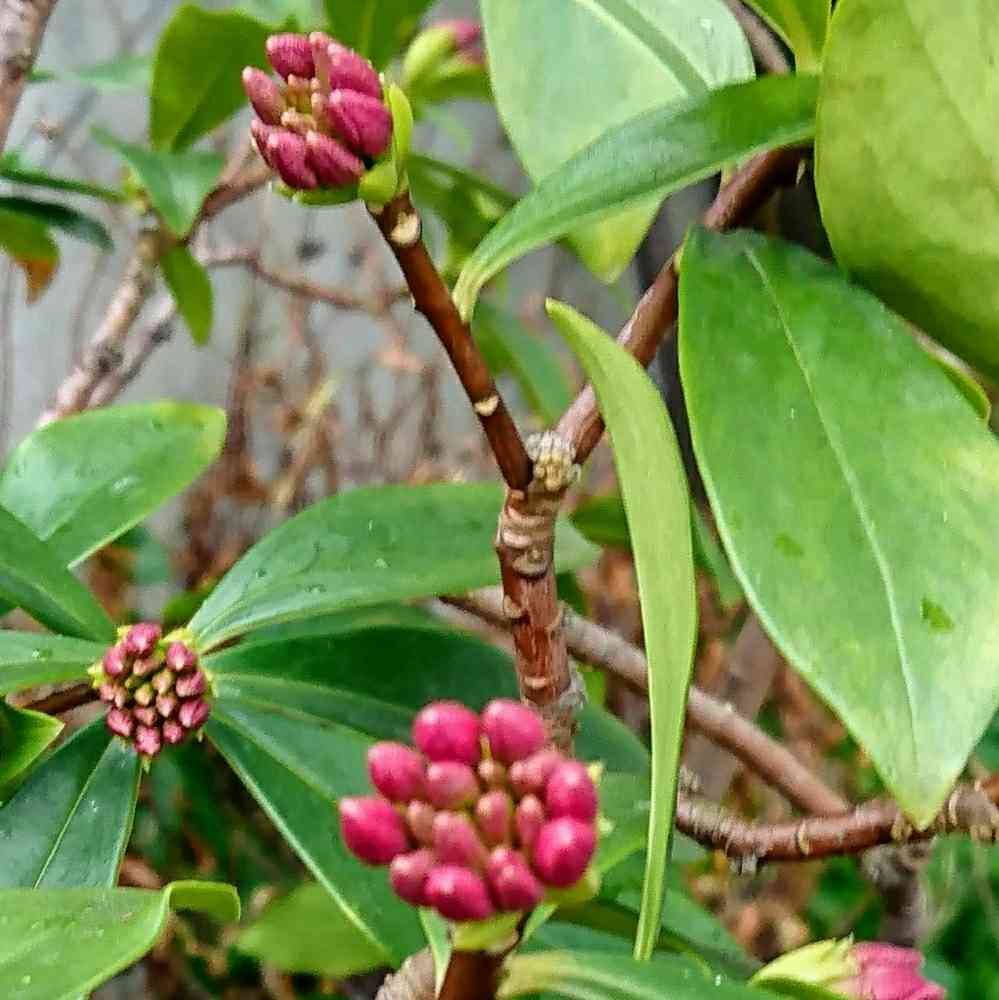 去年、誰もいない実家より 持って帰り 植え替えした沈丁花が花芽をつけました😄。