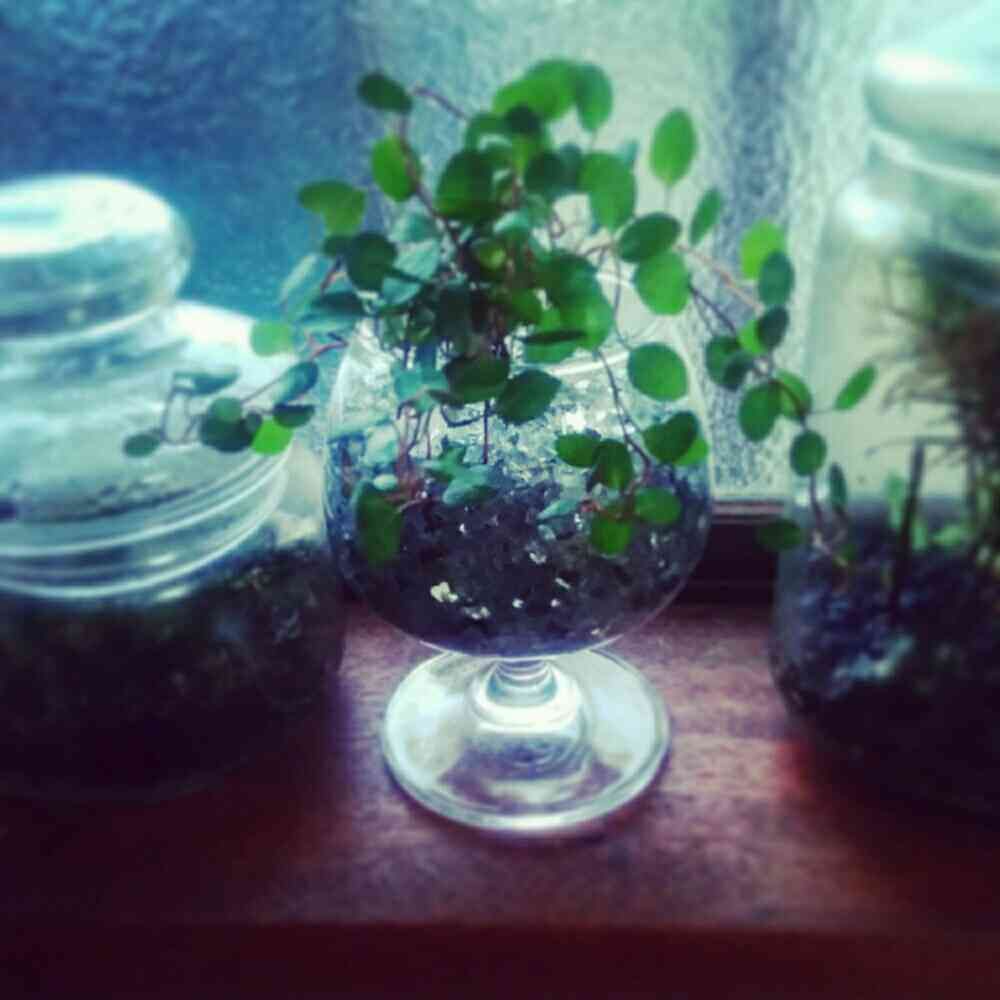 ただ普通に鉢に植えるんじゃなくて、プラントプラネットらしくガラスに植えてテラリウム仕立てに🎶
