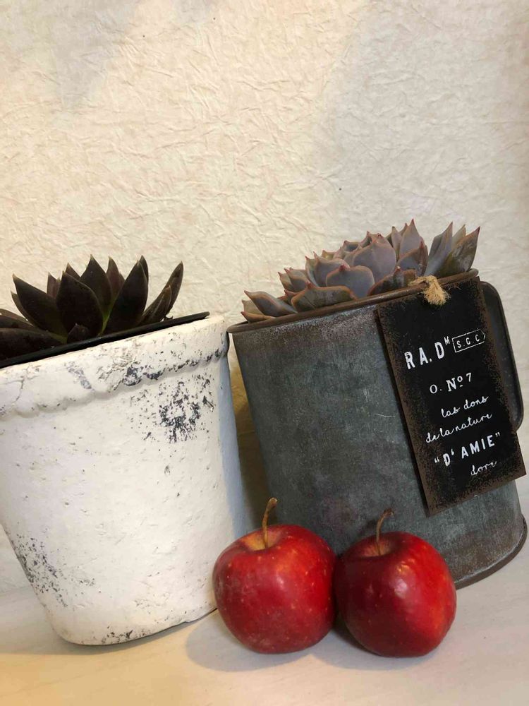 シックな多肉に小さな🍎がまた可愛い(*´▽`*)