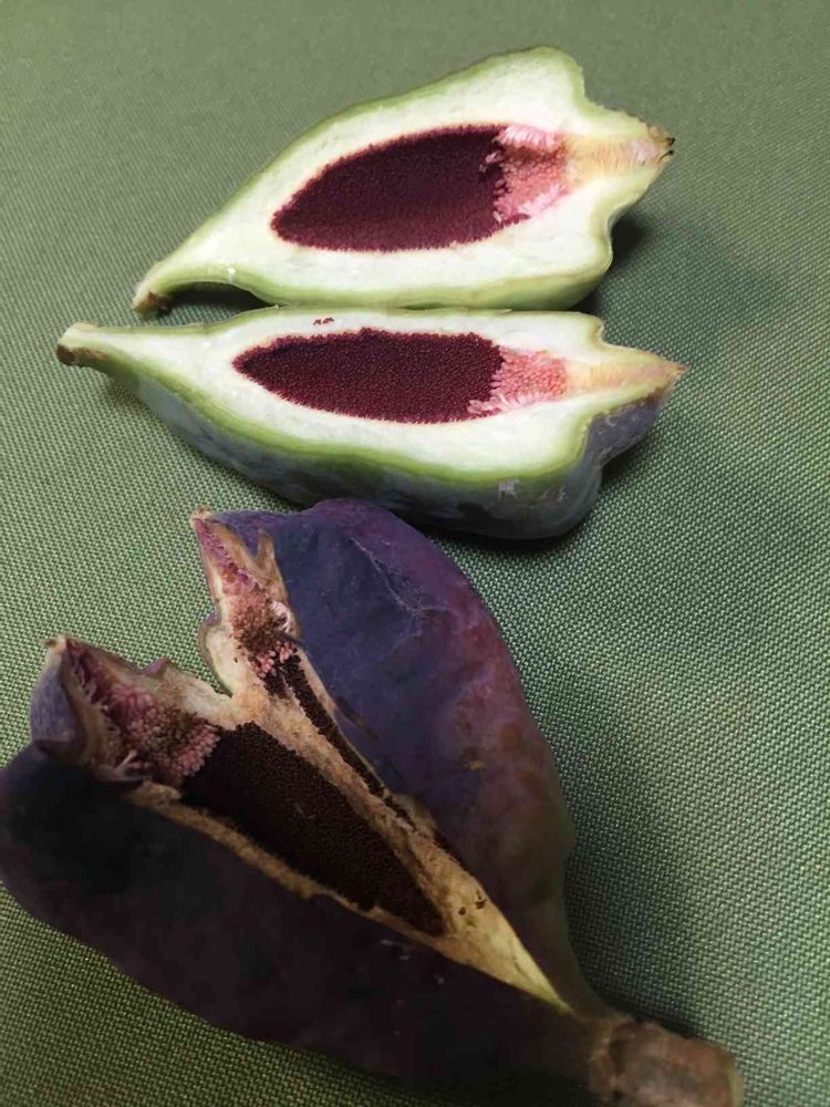 オオイタビの実です。割るとホントにイチヂクのようです。壁の緑地化とした観葉植物なんですね。