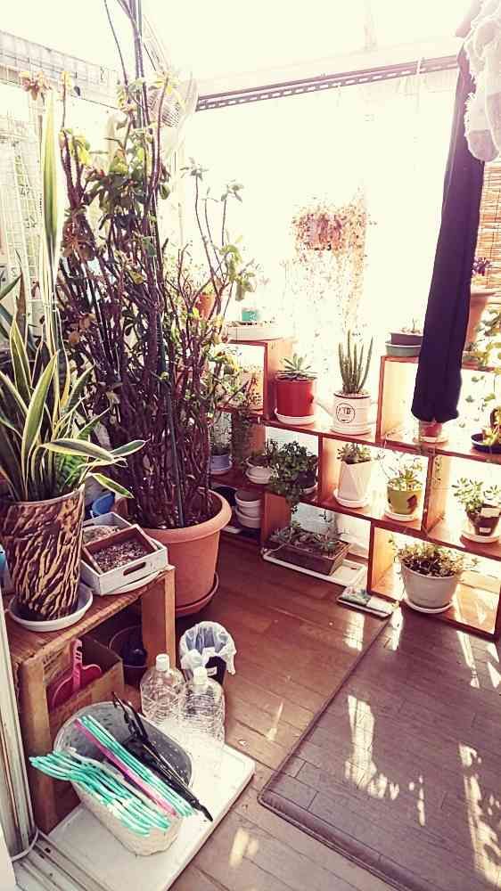 母の温室は洗濯物と一緒に植物が沢山あります😍