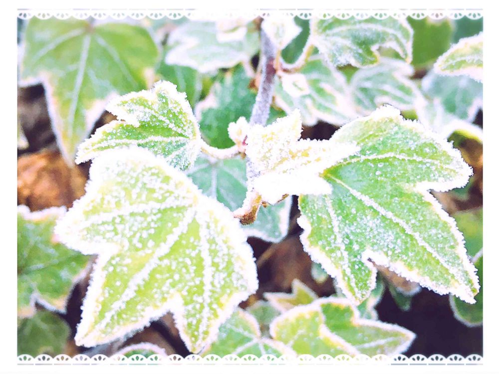 アイビー、霜が降りて、葉脈までクッキリと可愛いですね💕💕