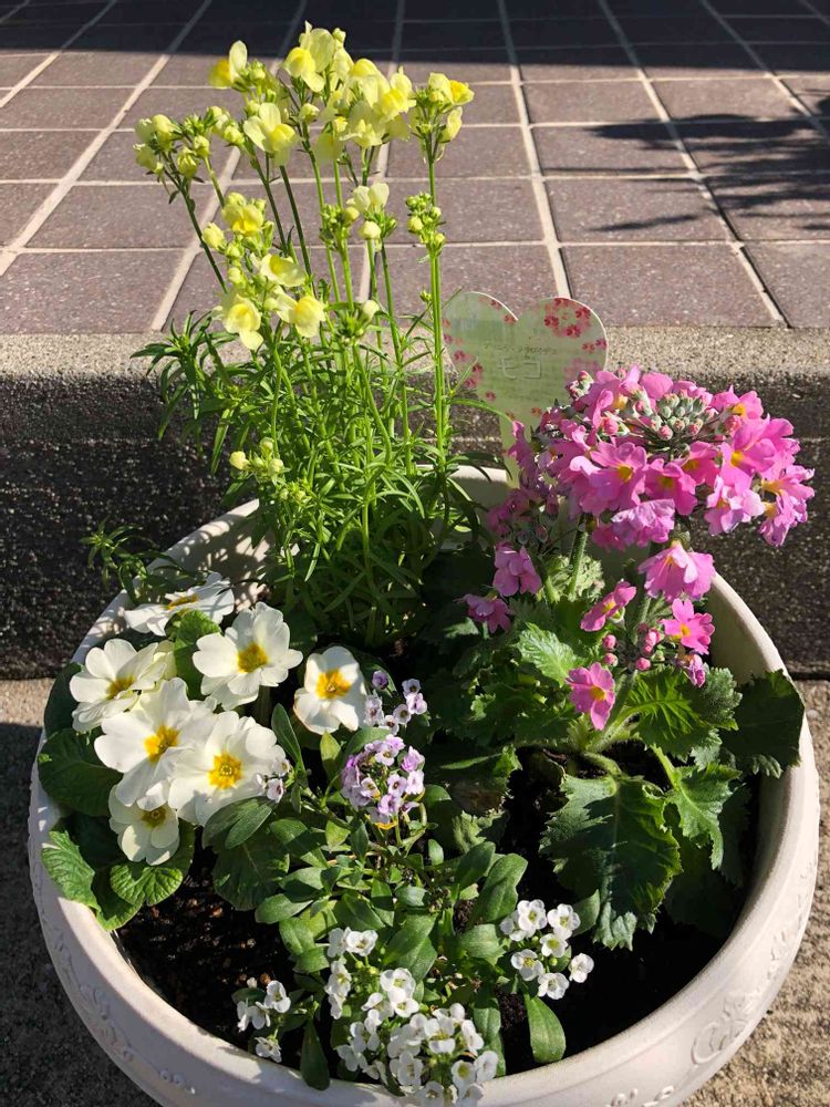 数日前にゴソゴソ作ってた寄せ植え🌸