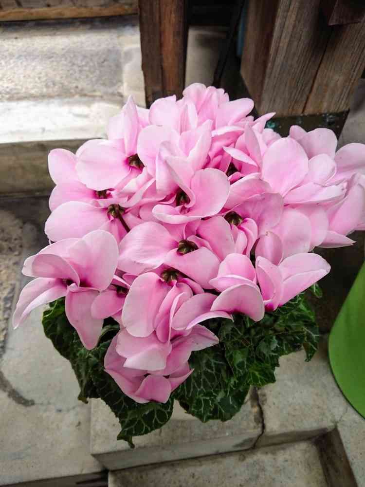ウォーキングの途中、よそ様の玄関先満開の🌸シクラメン❗