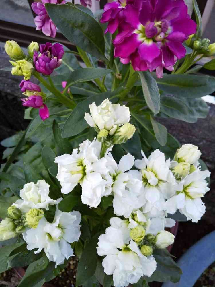 ストックはじめて植えたのですがこんなに脇芽がでて次から次へ咲くとは思いませんでした🎶