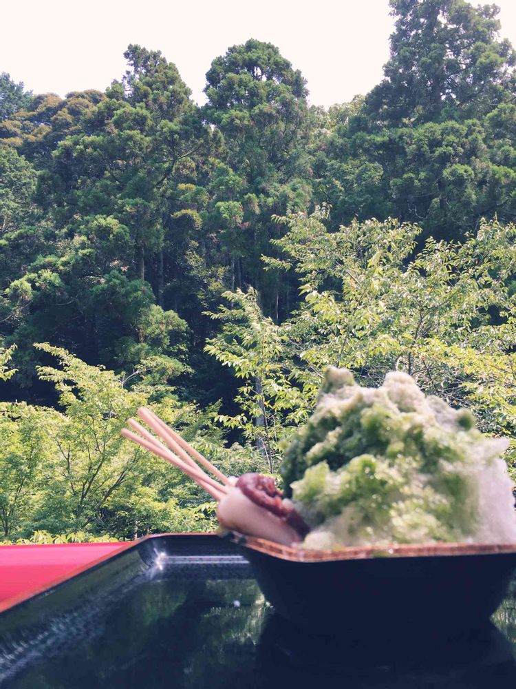 地元だと有名なお団子なんです〜(*´∀`*)かき氷ミルクまでかけちゃいました♡