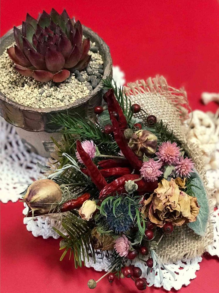 お一人様にちょうどピッタリで可愛い鉢ですよね~❤️ドライのブーケも素敵ですね~✨