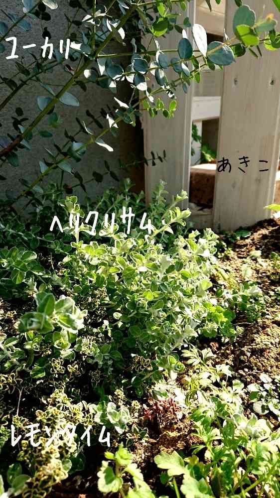 ユーカリの足元に植えたヘリクリサムシルバーミストとレモンタイムがモリモリ育っています☺️