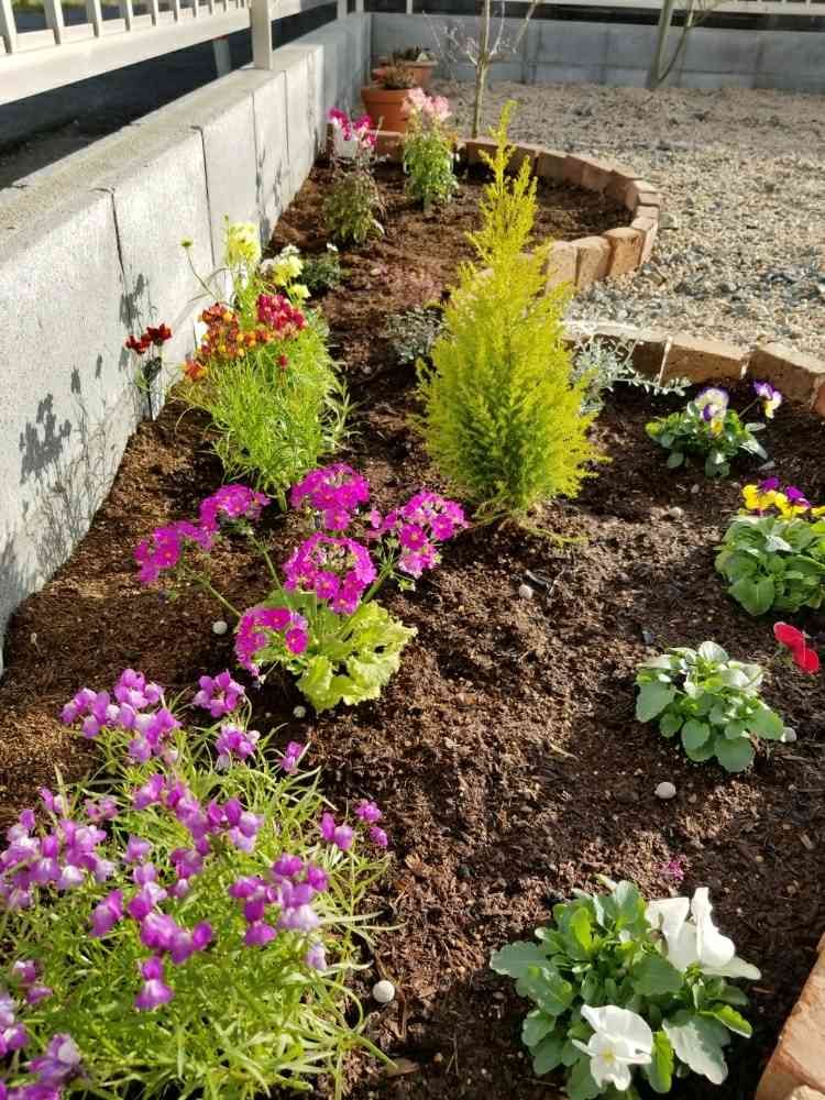 今日はとっても暖かい日‼最近やっと念願の花壇が完成したので、私好みの花苗たちをホームセンターや園芸センターなどでちょこちょこ見付けてやっと植えましたー❗