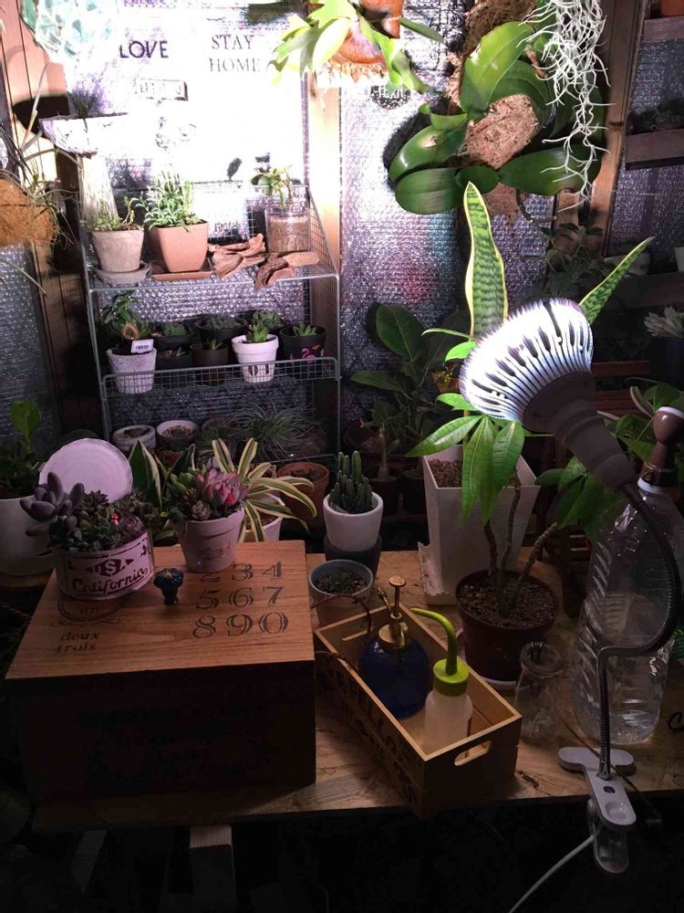 コメ入れ忘れました!植物育成ライトやっと届いて使ってます!ムードライトみたいなピンクにならないのを買ったのでそこまで気にはならないです!