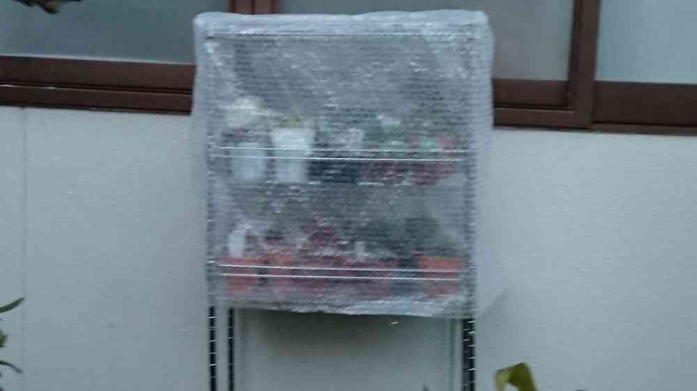 今朝は予想通り霜がおりましたが、大丈夫でした☺️ プチプチの効果絶大でした✨ まだスペースあるので、春にはもう1つ棚を作ろうかなぁ😋