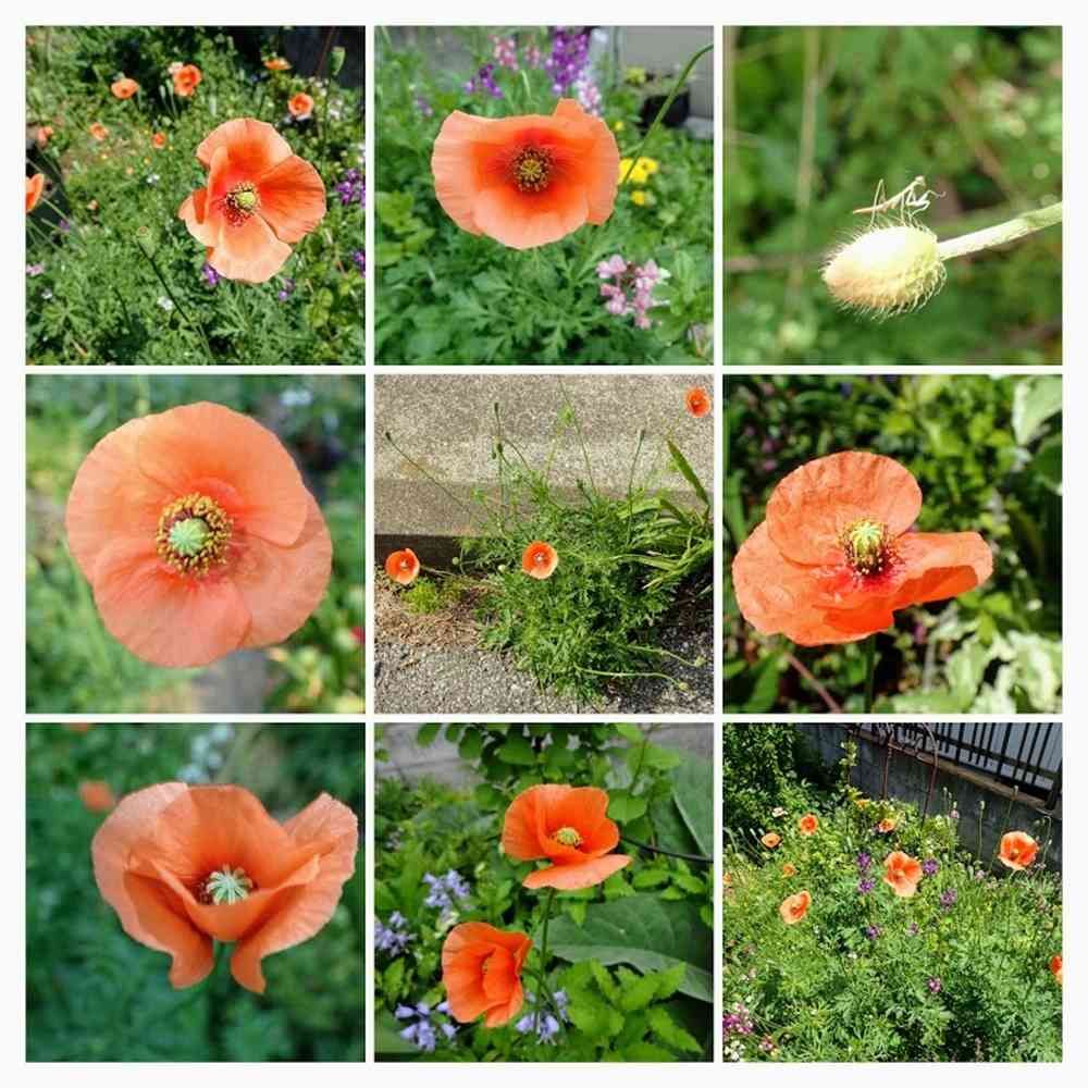 今日のお花、ポピーです。雑草扱いされてる帰化植物のナガミノヒナゲシ、花がきれいなので抜かずに置くから、毎年いっぱい出てきます。駐車場のコンクリの隙間からでも逞しく咲いて、♪あすふぁるとにさくはなのぉよぅにぃ~~♪と歌いだしそうになります^^;まあるいつぼみに、カマキリの赤ちゃんを載せて、風にゆらゆら、可愛らしい花です。花がほぼ終わるころには、種がはじける前に抜き取るようにしていますが、それでも結構取り切れてなくて毎年ちゃんと出てきます。抜き取らなかったら大変なことになるだろうと想像がつきますから、このくらい徹底して抜くくらいでちょうどいいのだろうと思ってます😁