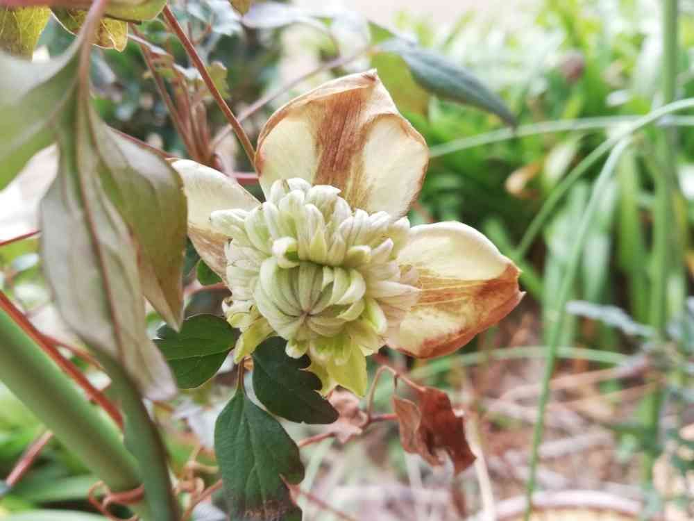 昨日撮ったpic です。 周の花びらは枯れてるけれど、12月8日に投稿したクレマチス(白万重)、中の部分は前より開いてる、、、みたい 😄💚