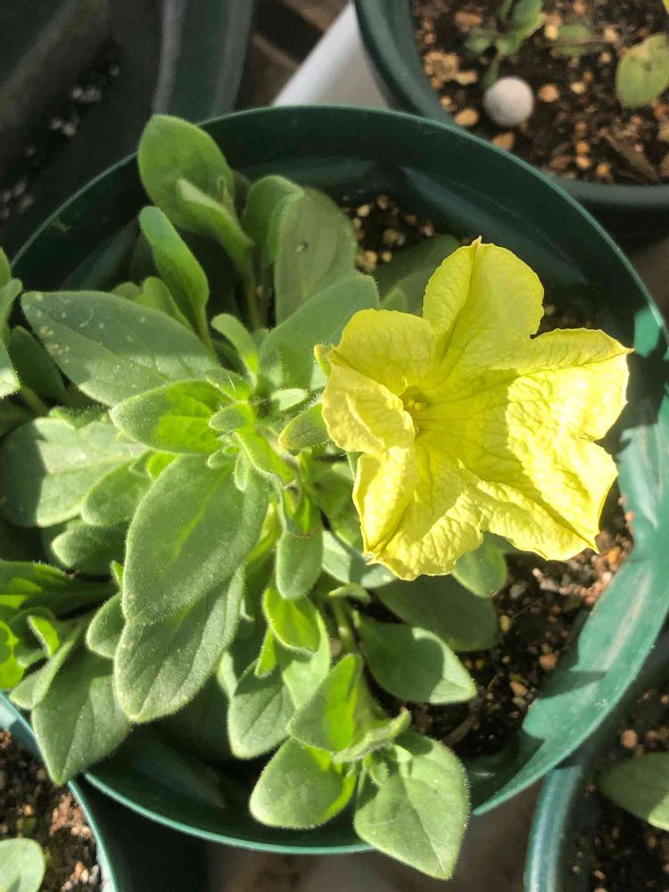 種から育てたペチュニア アンティークライムさんの1番花が咲いていました😃