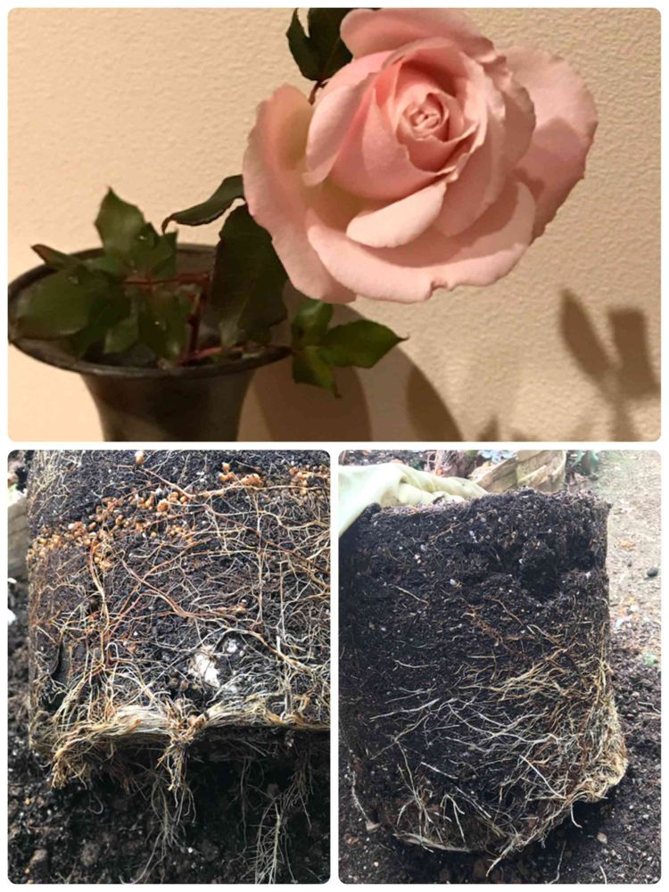 鉢を外すと今年勢いの良かったフレンチレースやティファニー、ペッシュボンボン、カクテルの根張りはすごく良くてなるほど〜👍って感じ