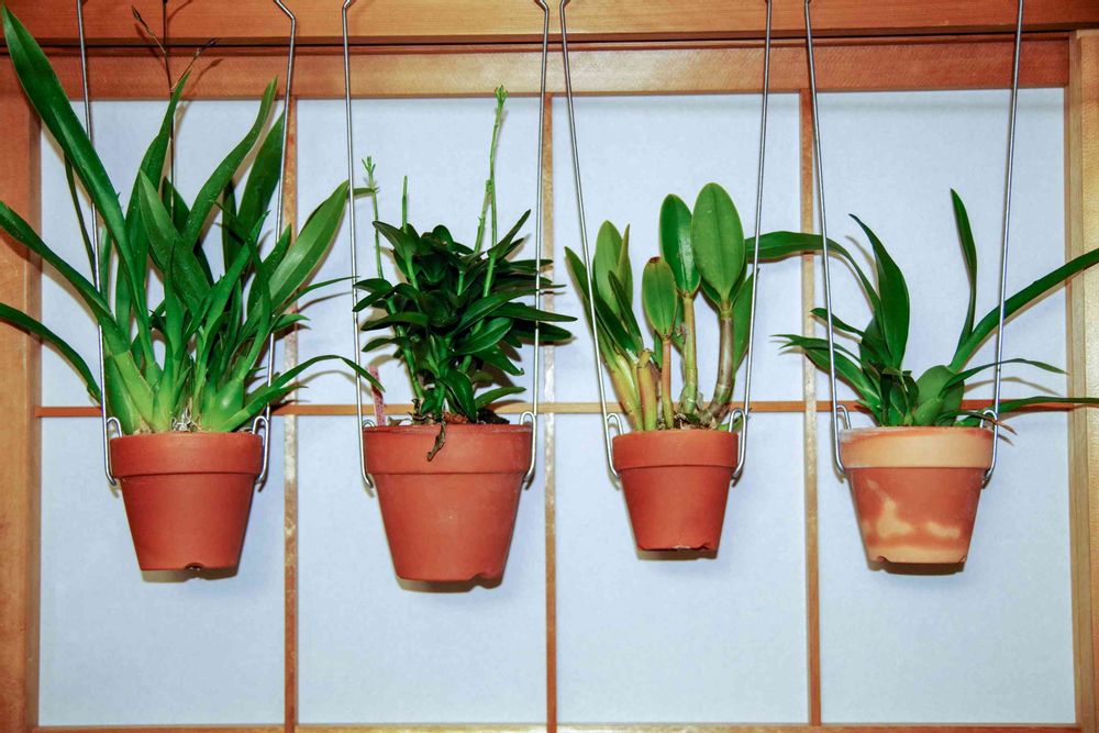 部屋の上の方が暖かいので、吊るした方が良いよって以前教えてもらったので、洋ラン達は冬は吊るす様にしています😄
