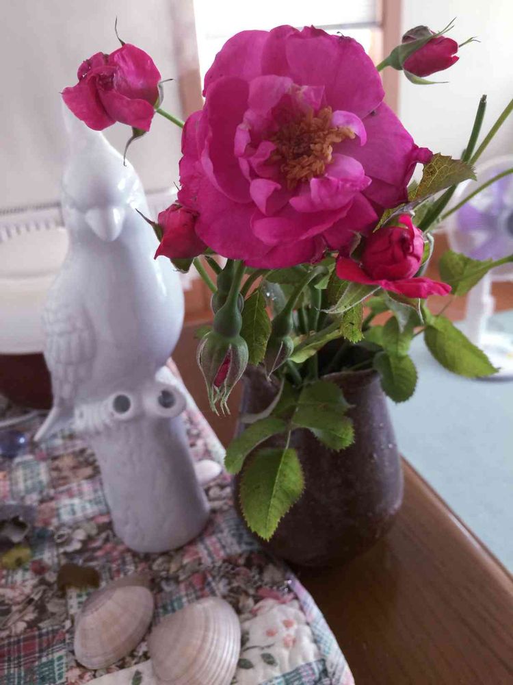 昨日の台風で蕾がいっぱいなのにポキンと折れちゃったみたい。元気になるかなぁ。