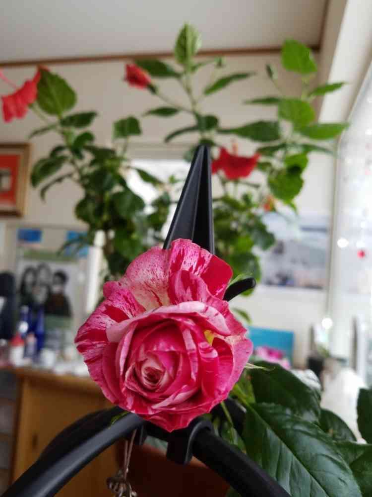 外は吹雪、🌺🌹咲いてくれてありがとう。