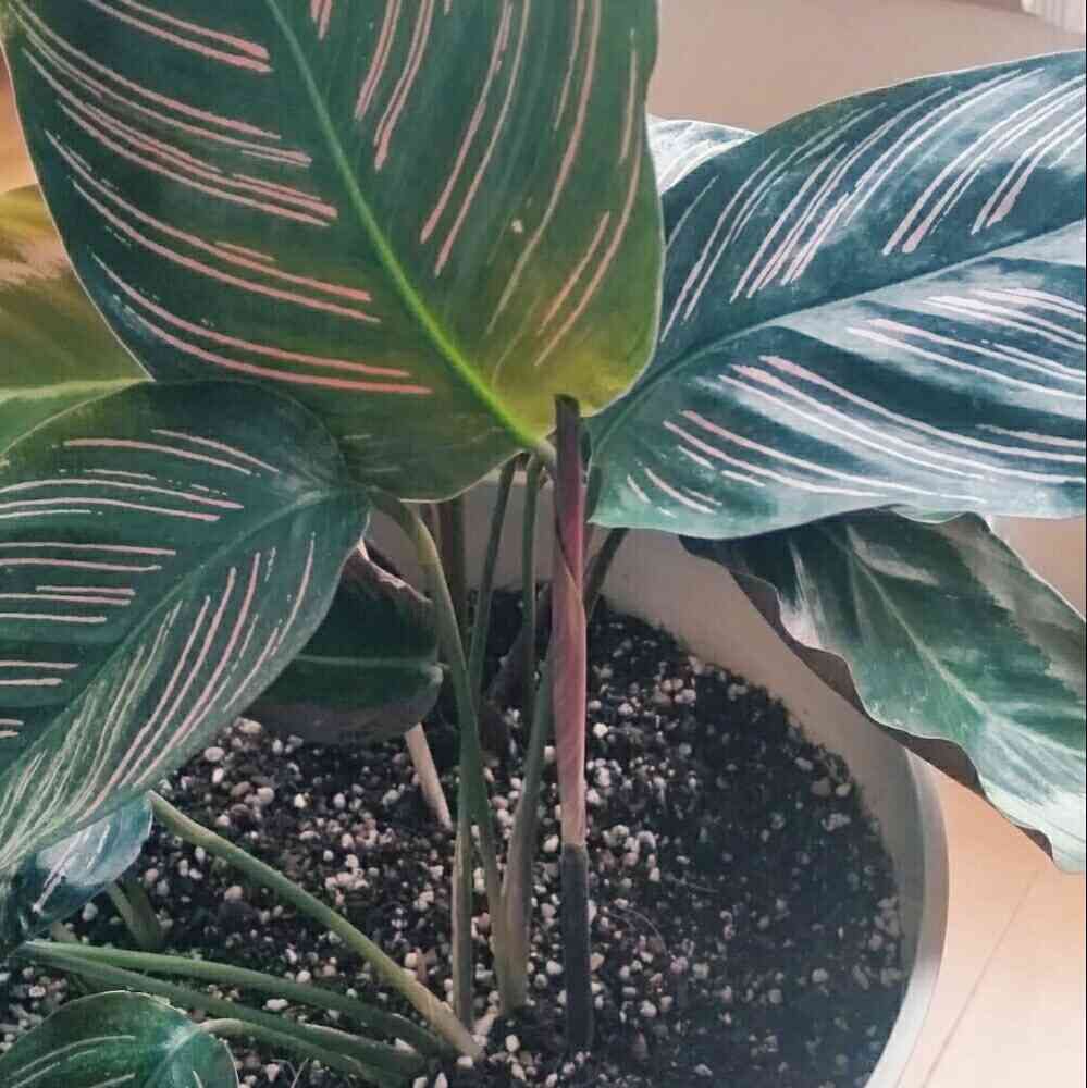 先日値切って購入してきたカラテアに新芽がありました。枯れた茎を切ろうと思って、念の為中見たら新芽が!期待してなかったから嬉しい~。
