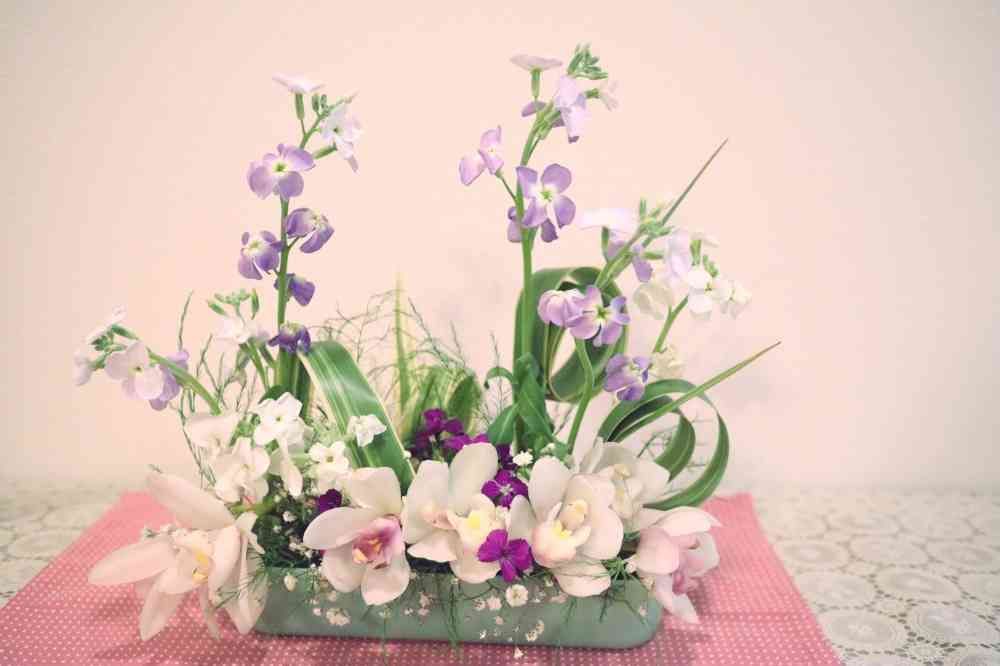 昨日のアレンジメントで余った花材とキキョウランを加えて、違うタイプのアレンジメントしました😃🎶