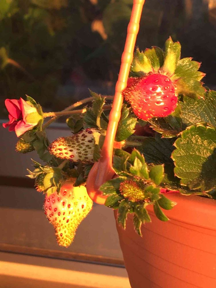 四季なりイチゴ🍓さん、花も🌺咲いてかわいいんですよ〜〜💕