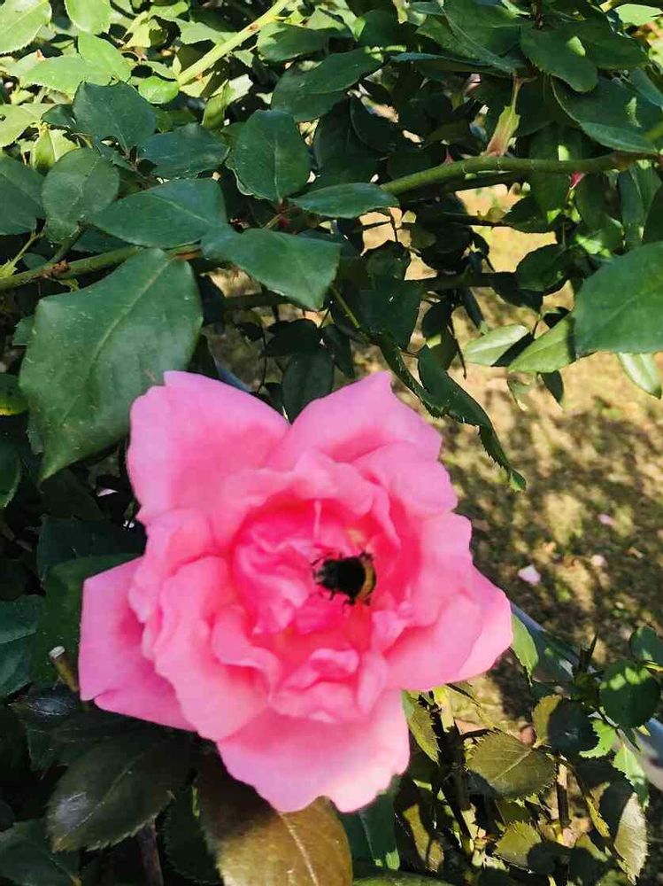 蜂さん(?)と薔薇、good timing で撮れましたね🤗👍❣️