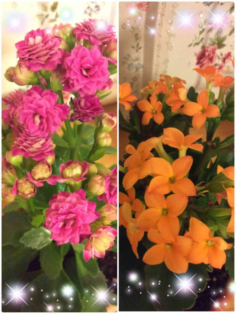 カランコエ八重咲きと一重咲きを並べてみました✨どちらも可愛い💕