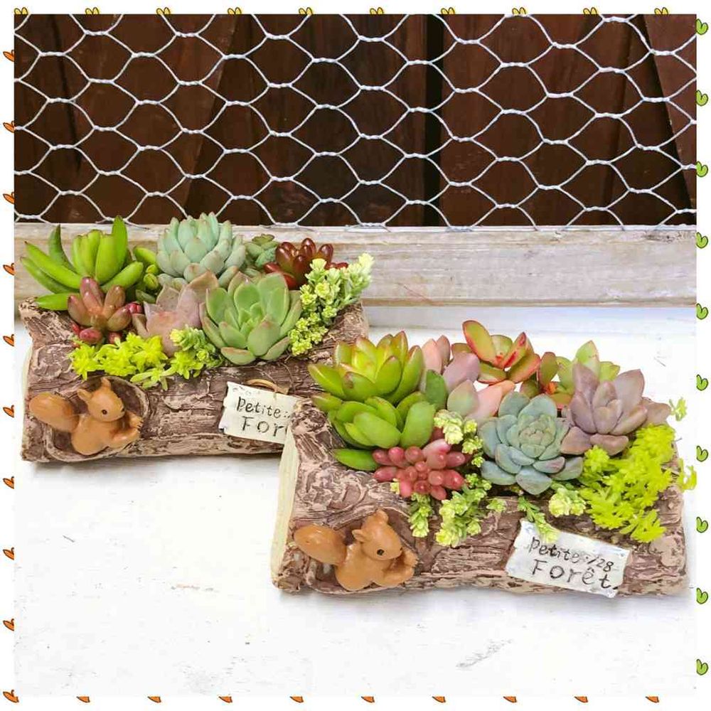 この切り株の寄せ植え、器の可愛さに助けられて毎回完売します👍✨