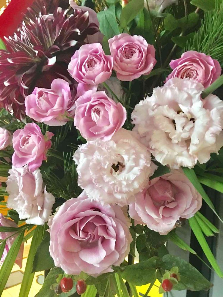 左上から大輪のダリア💕 ミニ薔薇🌹 淡い色のトルコキキョウ