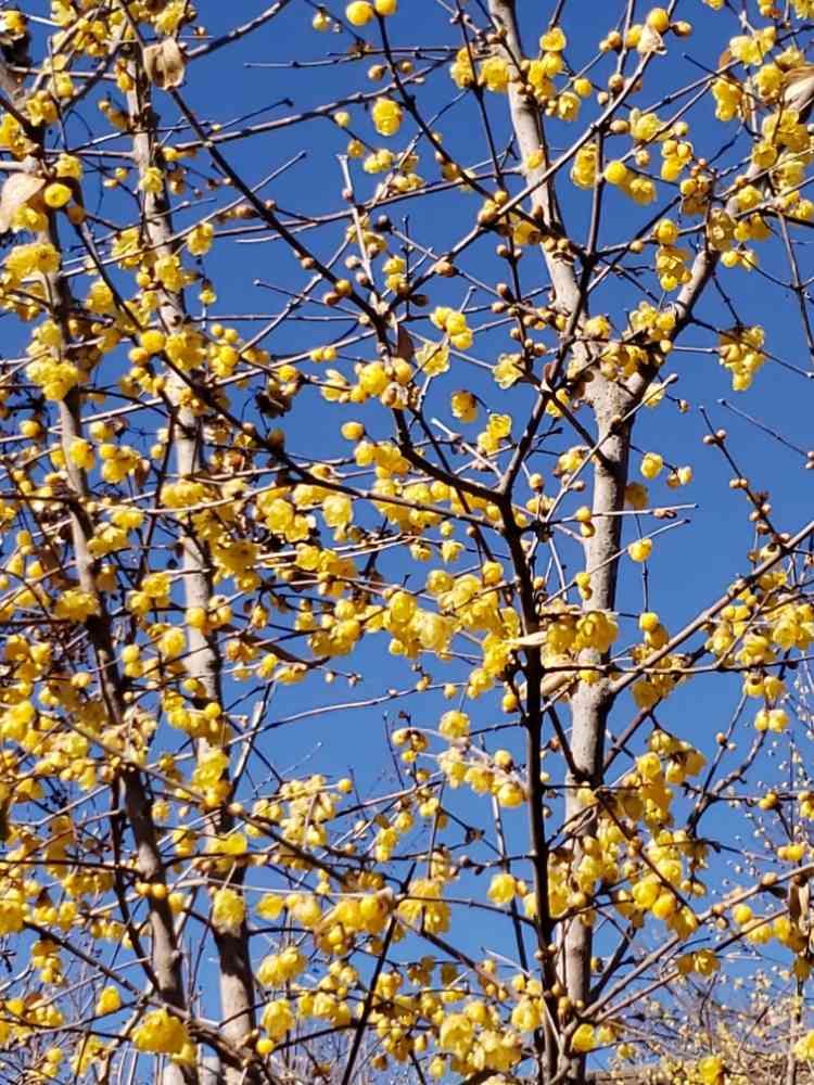 お見事です〜🙌🏻青空に蝋梅の黄色がなんとも美しく 生き生きと 快活な明るさを感じて まだまだ季節は冬ですが 春への希望を感じて 本当に素敵ですね〜🌼🌼😄✨♬ウキウキするようなお写真見せて頂き ありがとうございます😊