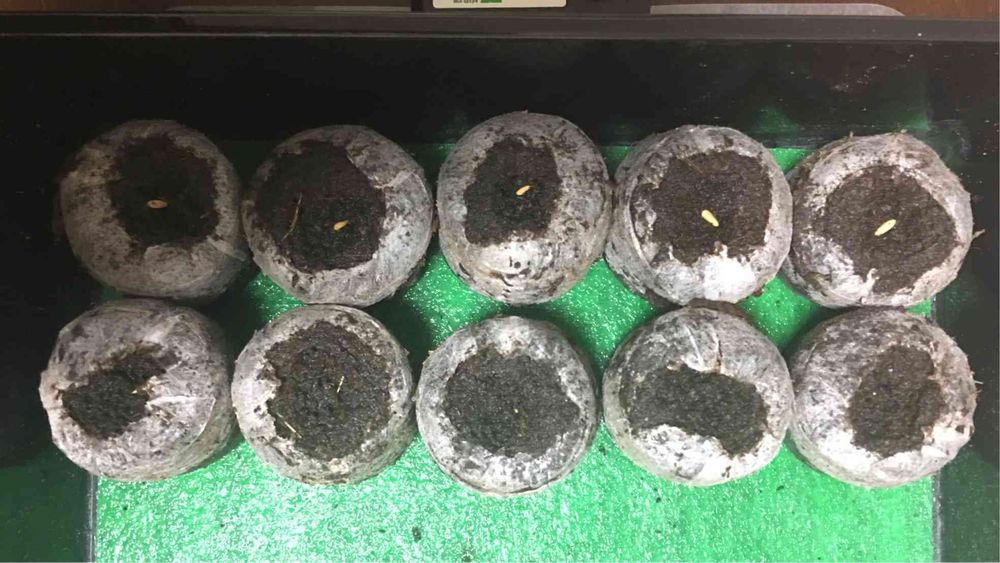 ジフィーセブン(水でふくらむタネまき土ポット)に播種し、最初はベンレート1000倍で腰水。