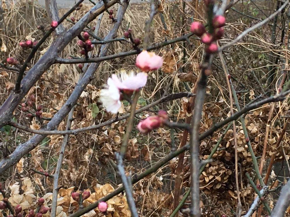 三鷹駅、玉川上水の所で梅が咲きはじめてました🌸