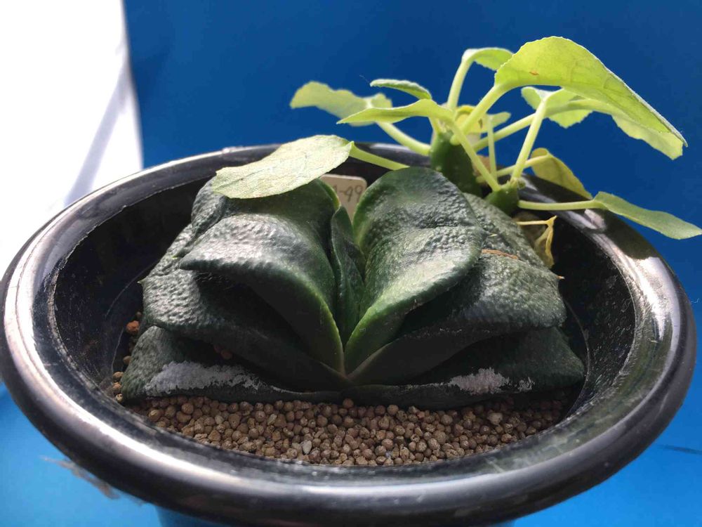 ※周りに生えているのは、入手後生えてきたものでドルステニア・フォエチダのこぼれ種と思われます。