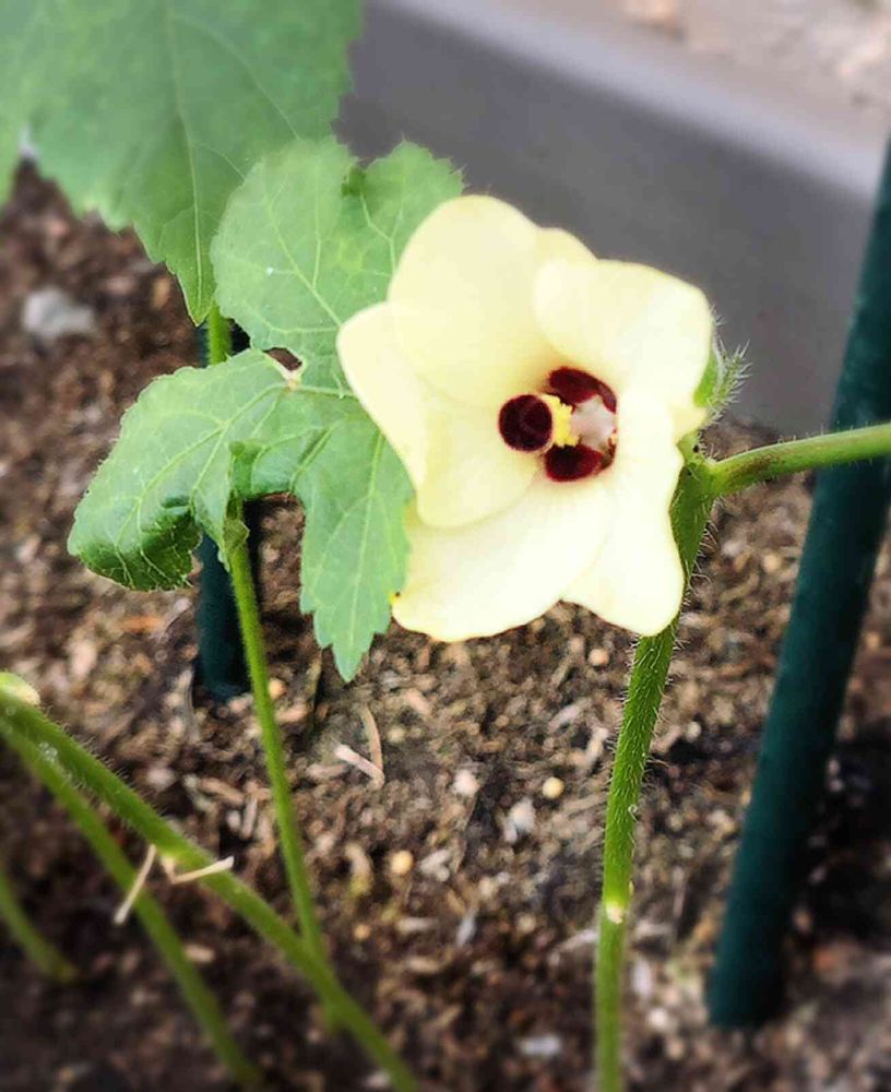 芽が出てから1ヶ月以上たってやっとオクラの花が咲きました。オクラたのしみ💕
