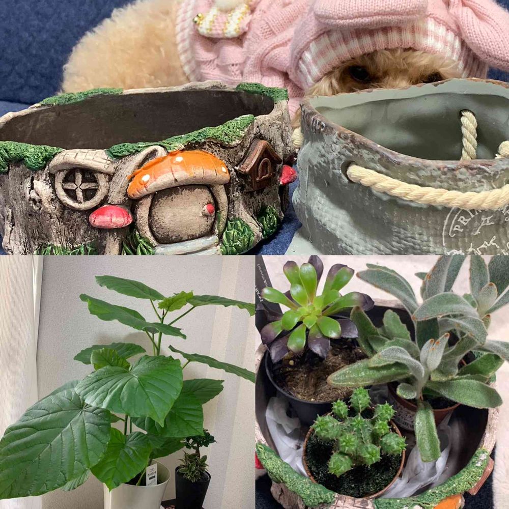 多肉さんだけのつもりがまだ先になるであろう寄せ植え用の鉢を2個😤そして前からずっと欲しかったフィカスウンベラータ🌴