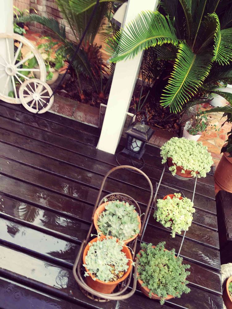気持ち良さそう〜〜💕 他の多肉達も雨のシャワーに当ててあげたい衝動にかられる‥