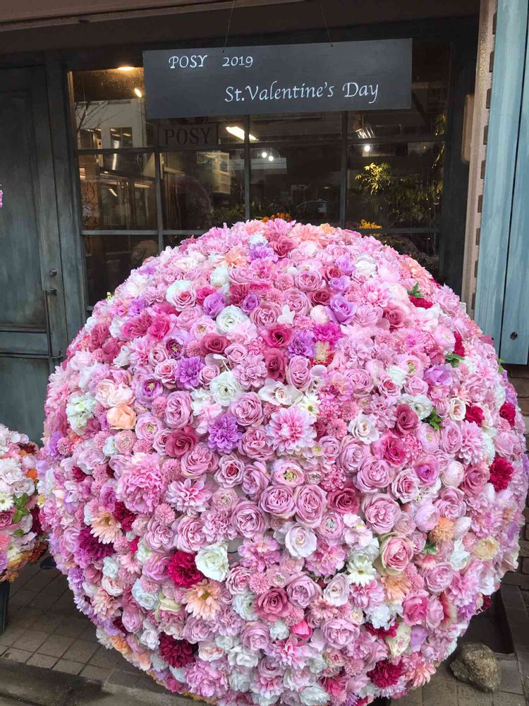 通りすがりの花屋さんの店先で素敵なバレンタインのディスプレイに遭遇!