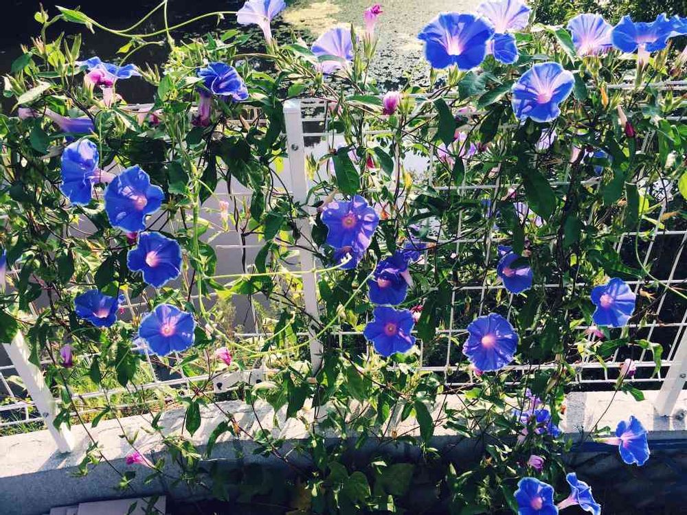 朝顔はブルーが好きです💙よその家の白い朝顔も涼しげで気になりました💕