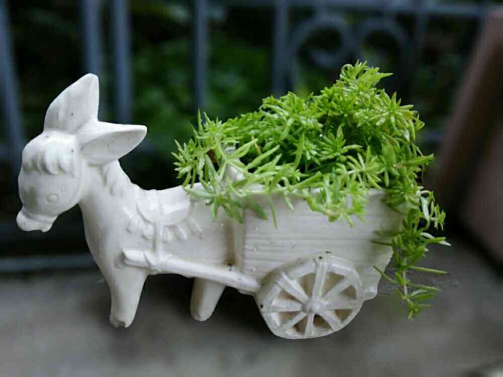 真っ白なロバさんの荷台にグリーン💚のセダムが映えるね😉