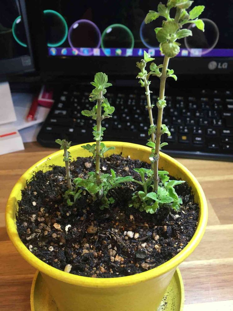 畑から鉢植えにしたキャットニップ