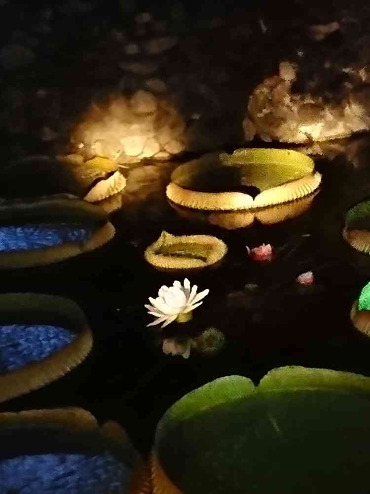 スイレン科のオオオニバスですね、夜のライトアップなんてステキですね!!