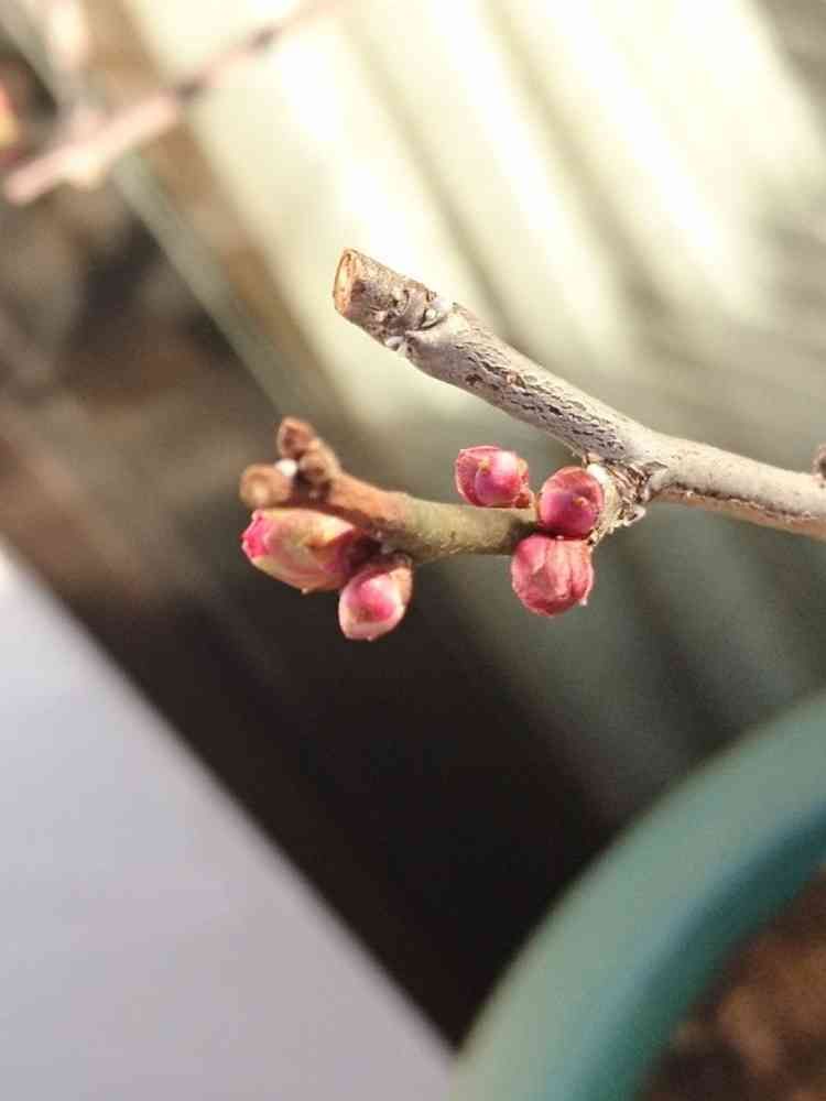 画像は義理の両親が旅行の記念に買ってきた鉢植えの梅。