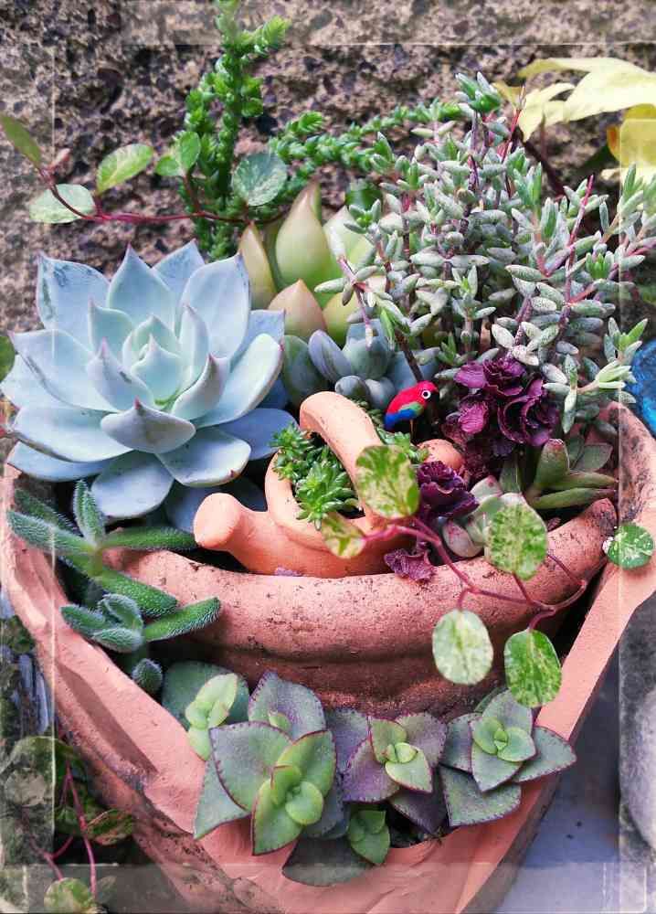 可愛く作られてる方のを見て、いつかやろうと思いつつ、割れた植木ばちが無かったので、実家等を探してたんです(。^。^。) (半年は経つ)