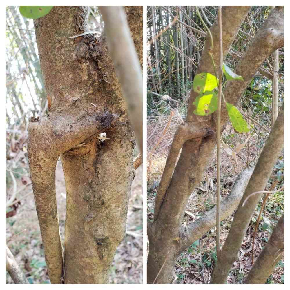 三本の枝がくっついて二本になっています。枝が太ってくっついたものと思われます。